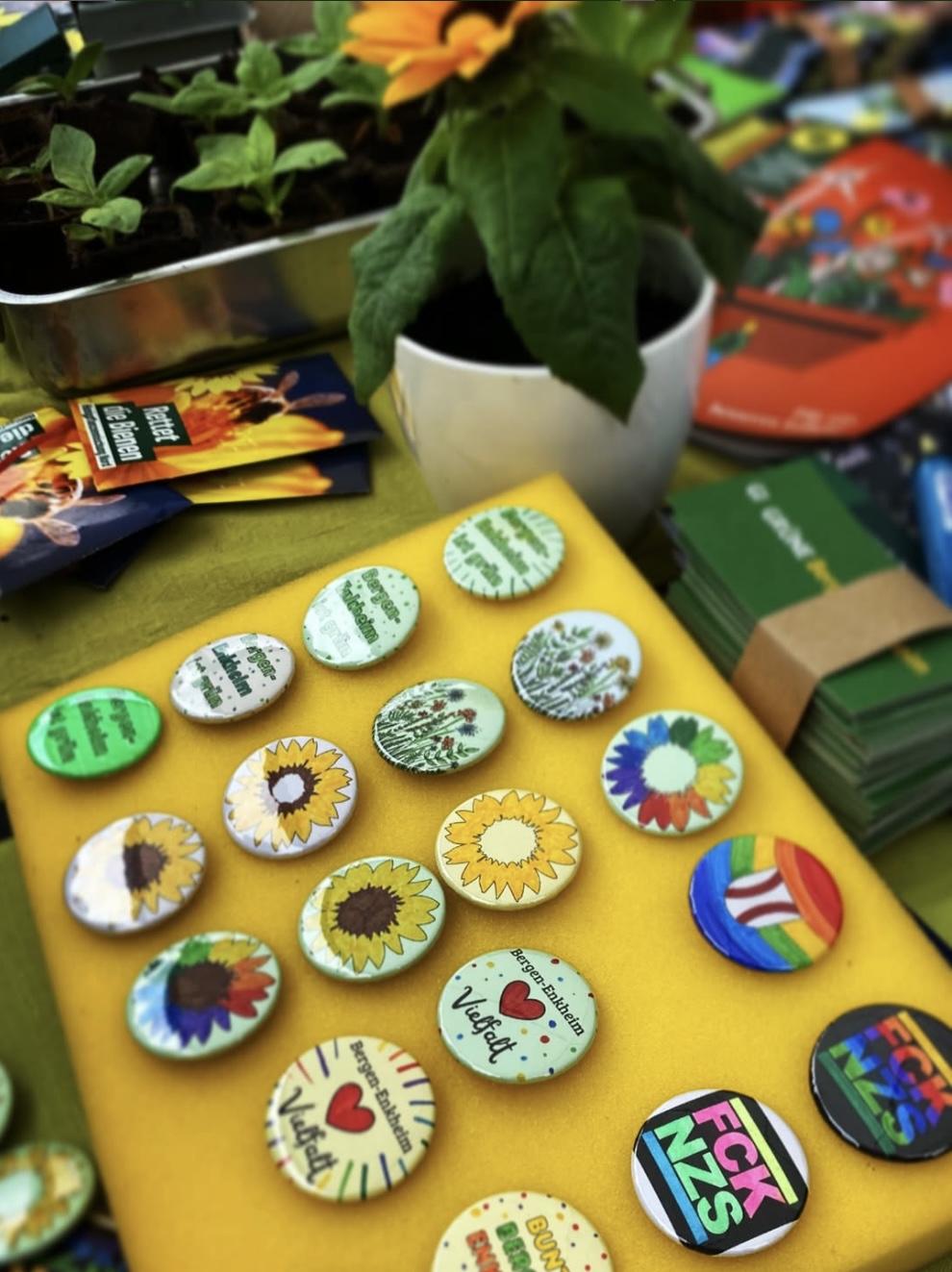 Durch unser politisches Quiz und die zu gewinnenden Pflanzen-Setzlinge kamen wir schnell mit den Besucher*innen ins Gespräch, haben zugehört, die Anliegen aufgenommen und in den Ortsbeirat getragen. Unser Einsatz an der Buttonmaschine konnte – nicht nur, aber auch – die jüngeren Gäste begeistern.
